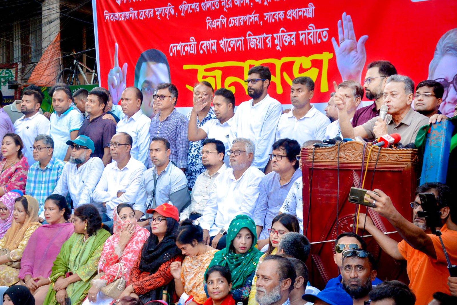 দেশনেত্রী বেগম খালেদা জিয়ার মুক্তির দাবিতে আয়োজিত জনসভায় উপস্থিত ছিলেন বিএনপি চেয়ারপার্সনের উপদেষ্টা আলহাজ্ব আমান উল্লাহ আমান। বক্তব্য রাখছে জাতীয় স্থায়ী কমিটির সদস্য আমীর খসরু মাহমুদ চৌধুরী